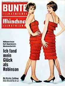 | | BUNTE ILLUSTRIERTE - Titel: "Die Kessler-Zwillinge sind in einer verzwickten Lage. Sie machten die Rechnung ohne die Liebe." | | Quick - Titelthema: "Ehe 1961 - Wie in unseren Tagen geheiratet wird - und wie es dann weitergeht" - Weitere Themen z.B.: "Brauchen wir eine neue Regierung?", "Carol Jackson / Chet Baker - Trompete und weisses Gift"