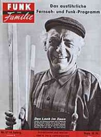 |  | |  | | FUNK UND FAMILIE - Titelbild: Paul Kuhn - Themen z.B.: "Sie sind nicht ausgestoßen - Ein Film über Sonderschulen" - "Ein Außenseiter - Ein Fernsehspiel aus dem australischen Alltag" | | Schalt ein - "Professor Dr. Bernhard Grzimek berichtet am Mittwoch im 1.Programm über seine jüngste Reise nach Tanganyika" | | FUNK UND FAMILIE - Titelbild: Henry Vahl vom Ohnsorg-Theater Hamburg in dem "volkstümlichen Lustspiel" "Das Loch im Zaun" |