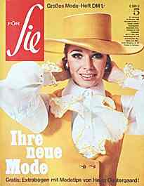 | |  | |  | moderne Frau - Themen z.B.: "Mode '68 - Von Dandy- bis Marokko-Look", "Die neuen Modefarben", "Interview mit einem Teufelskerl: Anthony Quinn", "Problem: Zehn Prozent für die Armen" | | moderne Frau - Themen z.B.: "Altersvorsorge: Sicherheit kann man kaufen", "Film: Die goldene Pille", "Raum ist auch in kleinen Räumen", "Eva 68: Natascha träumt vom Glück"" | | moderne Frau - Titelbild: Eva Renzi - Themen z.B.: "Schön von Kopf bis Fuß", "Lore Lorentz: Was trägt man zur Debatte", "Problem: In Zukunft nur noch gute Schüler?". "Eva 68 in den USA"