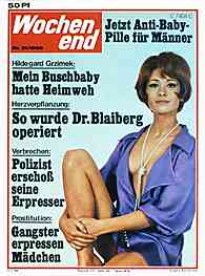 | | Wochenend - Themen z.B.: "Jetzt Anti-Baby-Pille für Männer", "Herzverpflanzung: So wurde Dr. Blaiberg operiert", "Wie lerne ich einen Mann kennen?", "Werden Sie schlank, meine Damen! Dann drehen sich die Männer nach Ihnen um"