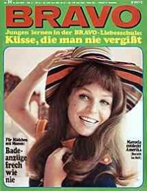 | | JUNGE WELT - "Monatszeitschrift für Junge Erwachsene" - Themen z.B.: "Etwas über Onanie", "Was ist Carnaby?", "Gammlerpsychologie" | | BRAVO - Titel:"Manuela entdeckt Amerika" - Themen z.B.: "Bill Wyman: Ich machte die Steine wieder hart", "Bruder Adam - das schwarze Schaf der Cartwrights", "Diana Rigg: Ich brauche die Freiheit, um lieben zu können", "Wenn die Zunge zärtlich wird...", "Was Mädchenküsse Dir verraten"