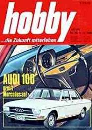 | | hobby - "...die Zukunft miterleben" - Titel: "AUDI 100 greift Mercedes an!" - Themen z.B.: "Wie funktioniert die elektronische Armbanduhr?", "Tragschrauber, Flugzeug für den kleinen Mann" | | hobby - "...die Zukunft miterleben" - Titel: "Feuerstühle jetzt bei uns!" - Themen z.B.: "Computer-Kamera für jedermann", "Wohnen Sie richtig?" |